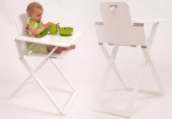 seemed to be bulky when they were folded up. We needed something that could slide in next to the fridge. This high chair is 4cm thick when folded up. There seems to be a tendency with baby products to keep adding features. The problem with this is that it makes the product appear complicated and difficult to use. Sometimes features that appear important when making a purchase (like upholstry and sliding trays) can also turn out to be totally unnecessary.They can actually make the use of the product more difficult. In the case of the high chair- upholstry and sliding trays amke it difficult to clean. Amongst parents there is therfore a trend towards purchasing a fully featured pram or high chair to begin with, then finding these products too difficult to use and purchasing a simpler item to replace it.